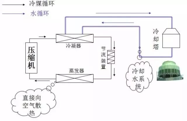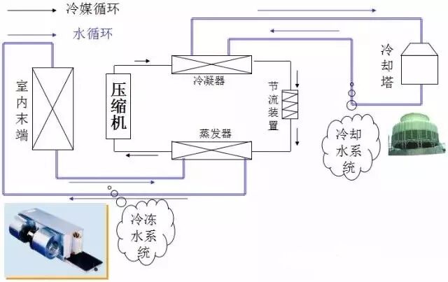 典型中央空调循环系统图(水冷冷水机组)