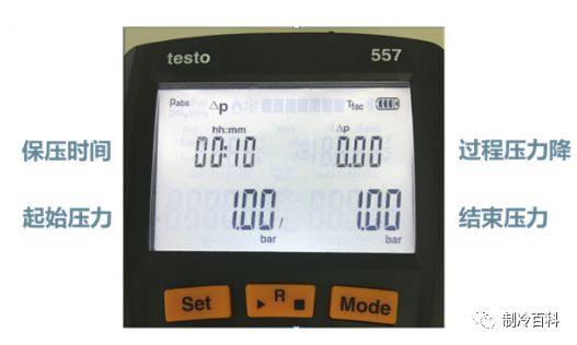 使用德图系列的电子冷媒表,支持温度补偿的压力测试,可以减小因温度变化带来的压力指示偏差,从而使得测试过程准确高效。对于典型的家用空调系统,测试可以在大约15分钟内完成并验证。当耐压测试结束,并释放这种高压气体时,将压力释放到1bar左右。以保证不会有空气进入系统中。