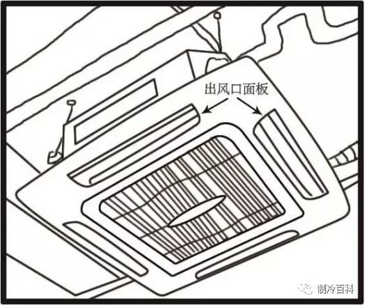 ②对于家用中央空调的风口,除了能遇到上面这种风管式,可能还会看见下面这样的嵌入式天花机,而它的出风口就在天花机的四边(如下图),清理顺序也是一样的。